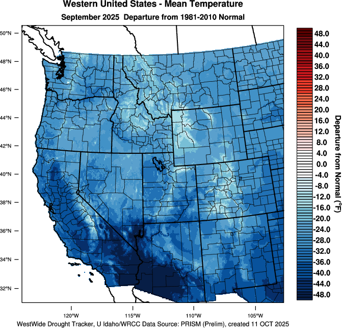 PRISM > 09/2025 > Temperature Anomaly 1 Month > Western US
