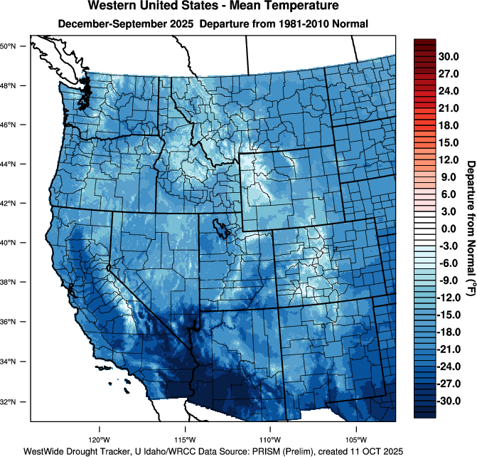 PRISM > 09/2025 > Temperature Anomaly 10 Month > Western US