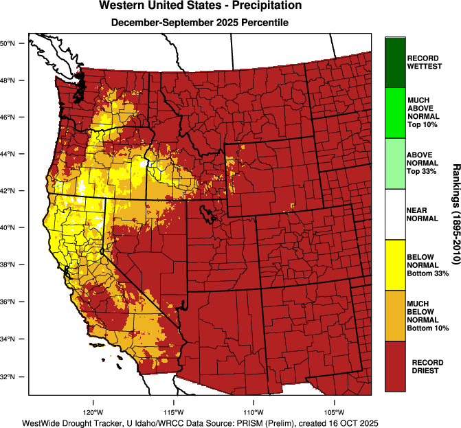 PRISM > 09/2025 > Precipitation Percentile 10 Month > Western US