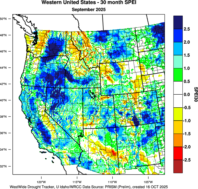 PRISM > 09/2025 > SPEI 30 Month > Western US