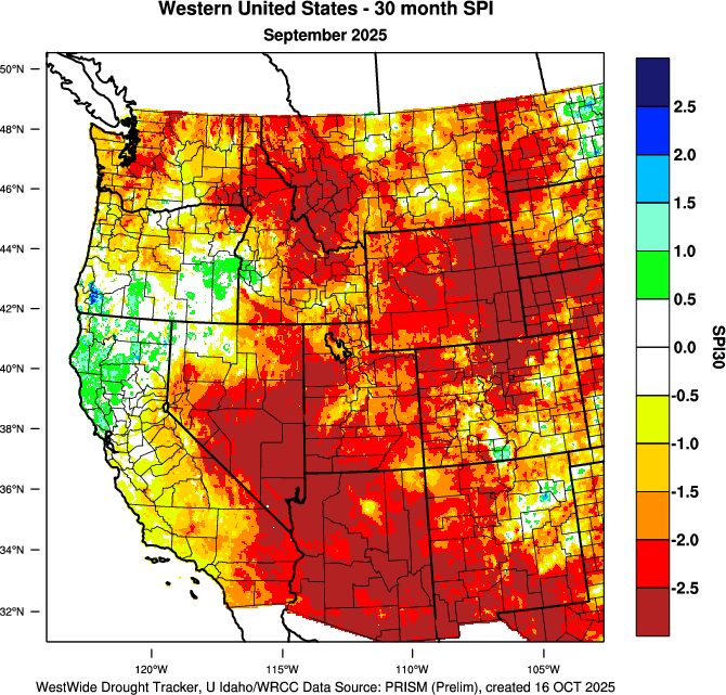 PRISM > 09/2025 > SPI 30 Month > Western US