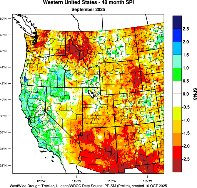 PRISM > 09/2025 > SPI 48 Month > Western US