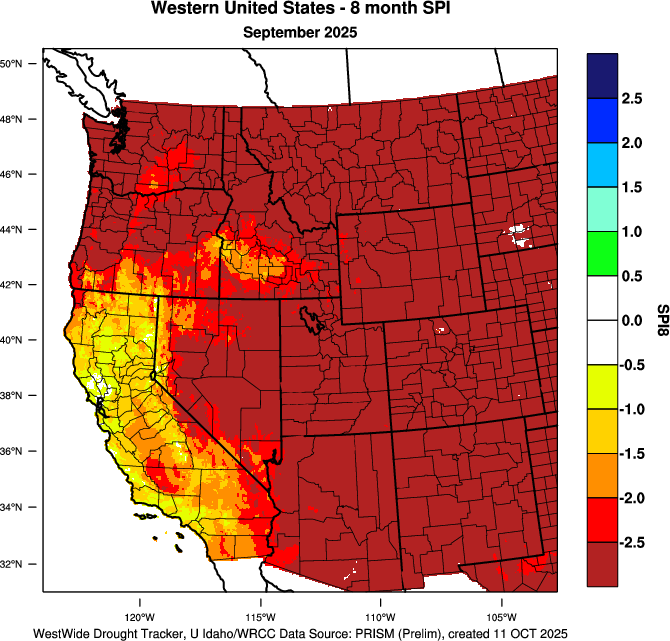 PRISM > 09/2025 > SPI 8 Month > Western US